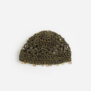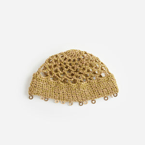 Turkish yarn and gold thread with brass discs.