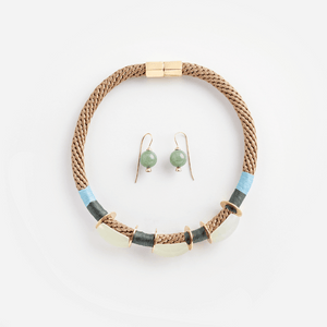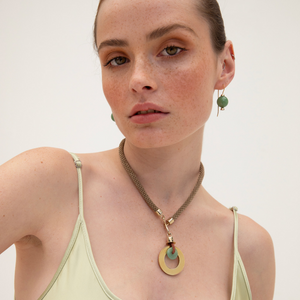 • Brass shepherd's hook earrings with jasper or aventurine stones.